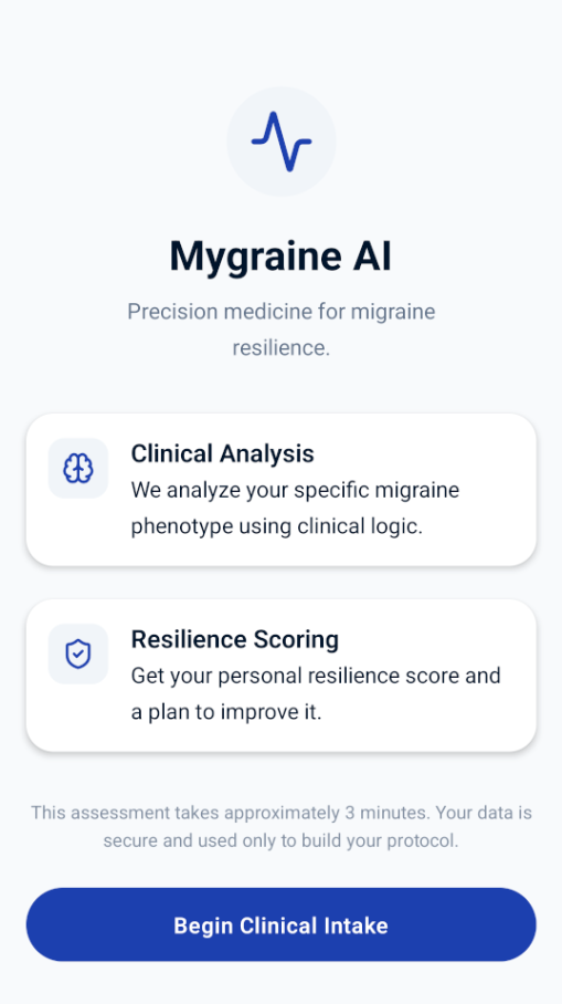 Get an ICHD-3 compliant migraine assessment through a conversational AI doctor — powered by voice, guided by science. Track attacks, understand your triggers, and build resilience.