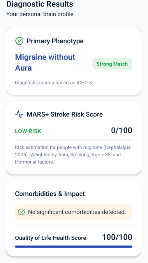 “Finally, a patient-facing tool that actually follows ICHD-3 criteria. My patients come in better informed, which makes consultations far more productive.”